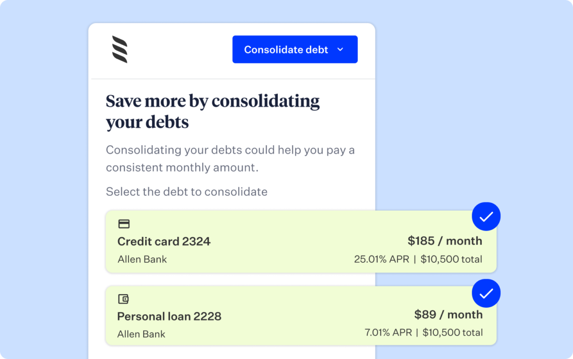 • Interactive debt consolidation tool